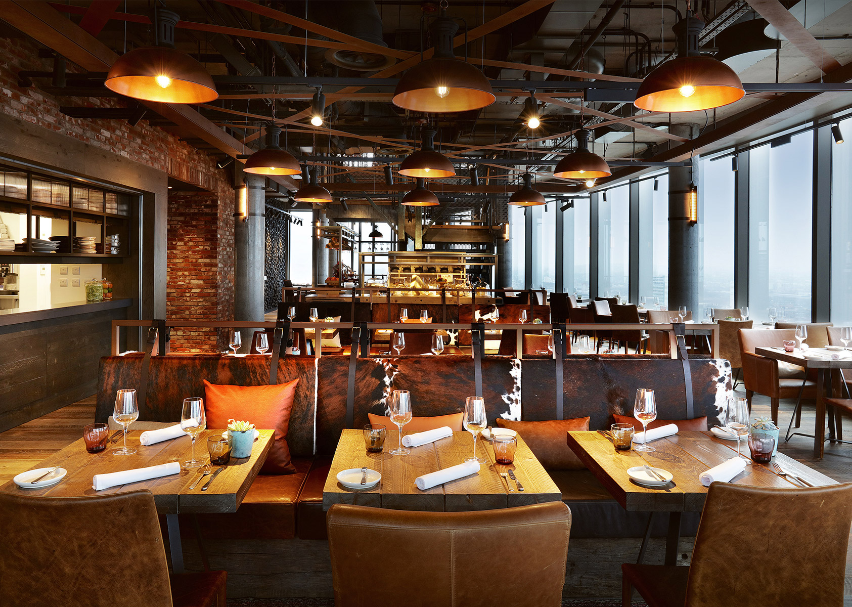 Weathered metals, rustic timbers and polished concrete finishes are offset by warm lighting, cushioned lounge areas and vintage rugs, with carefully selected pieces of classic furniture to create a snug, refined and luxurious, experience within an industrial setting. With floor to ceiling glazing, London’s iconic skyline features as the backdrop to the experience.