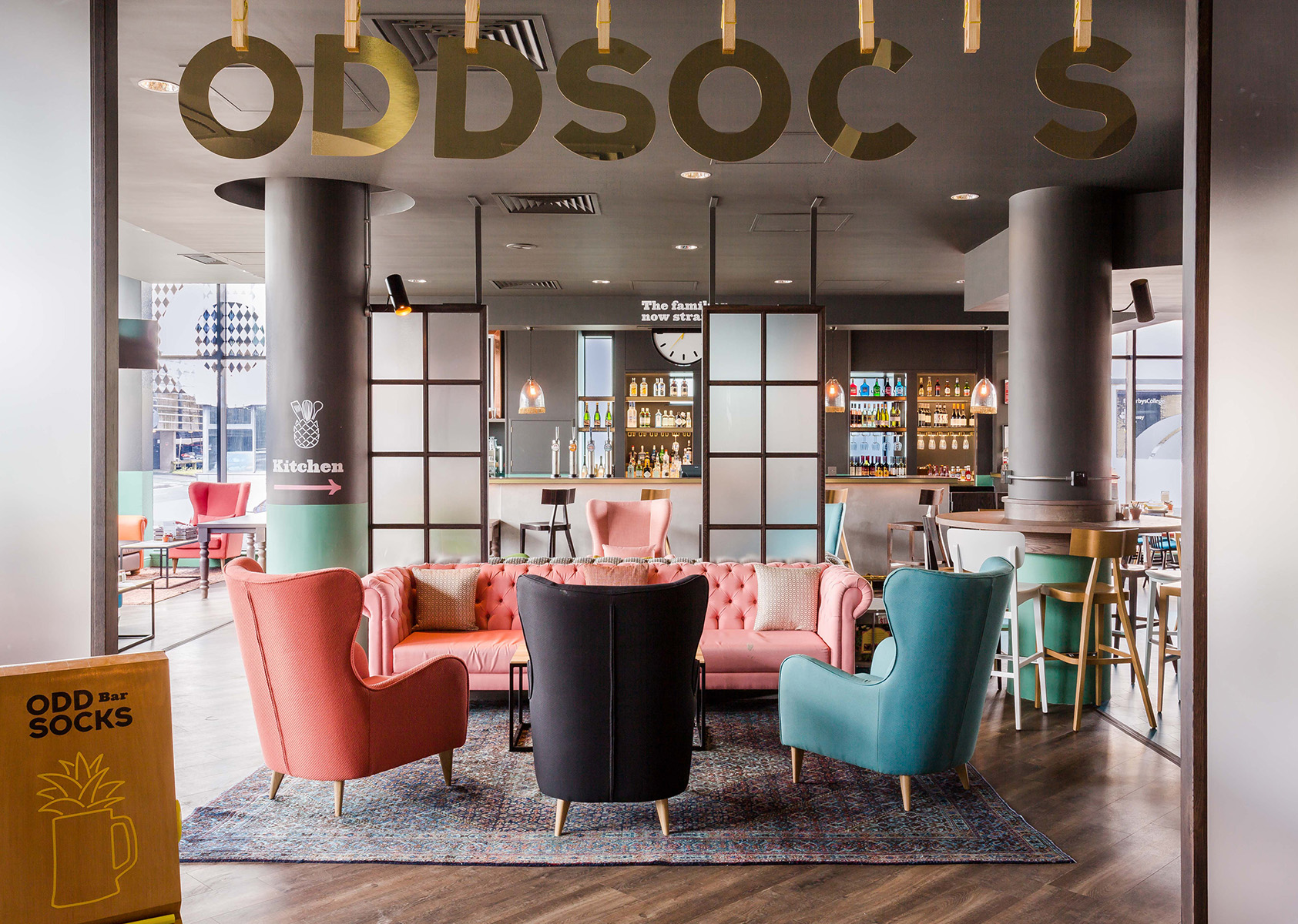 Oddsocks is the new restaurant and bar offering at Jurys Inn, Brighton. Designed by Mystery as a unique bar and kitchen that meets the needs of hotel guests and locals; corporate work crowds and weekend leisure-seekers.